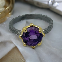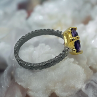 Ametist Özel Tasarım Antik Gümüş Yüzük