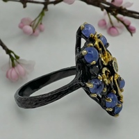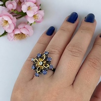 Tanzanit Doğal Taş Özel Tasarım Siyah Rodajlı Gümüş