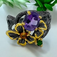 Ametist Özel Tasarım Siyah Rodajlı Gümüş Yüzük