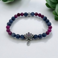 Yakut ve Safir Taşlı Gümüş Lotus Charmlı Bileklik
